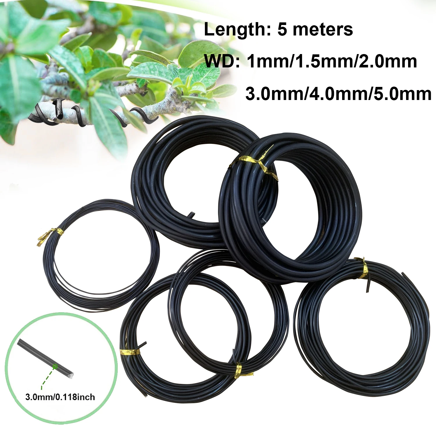 Black Aluminum Wire 1mm 1.5mm 2mm 3mm 4mm 5mm for Garden Plant Shaping 5m