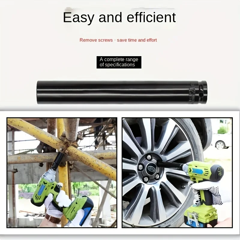 This Electric Wrench Socket Set is designed for efficient and powerful performance, featuring an extended hexagonal design suitable for various applications. It includes a range of socket sizes to accommodate different nuts and bolts, making it a versatile addition to your toolkit.