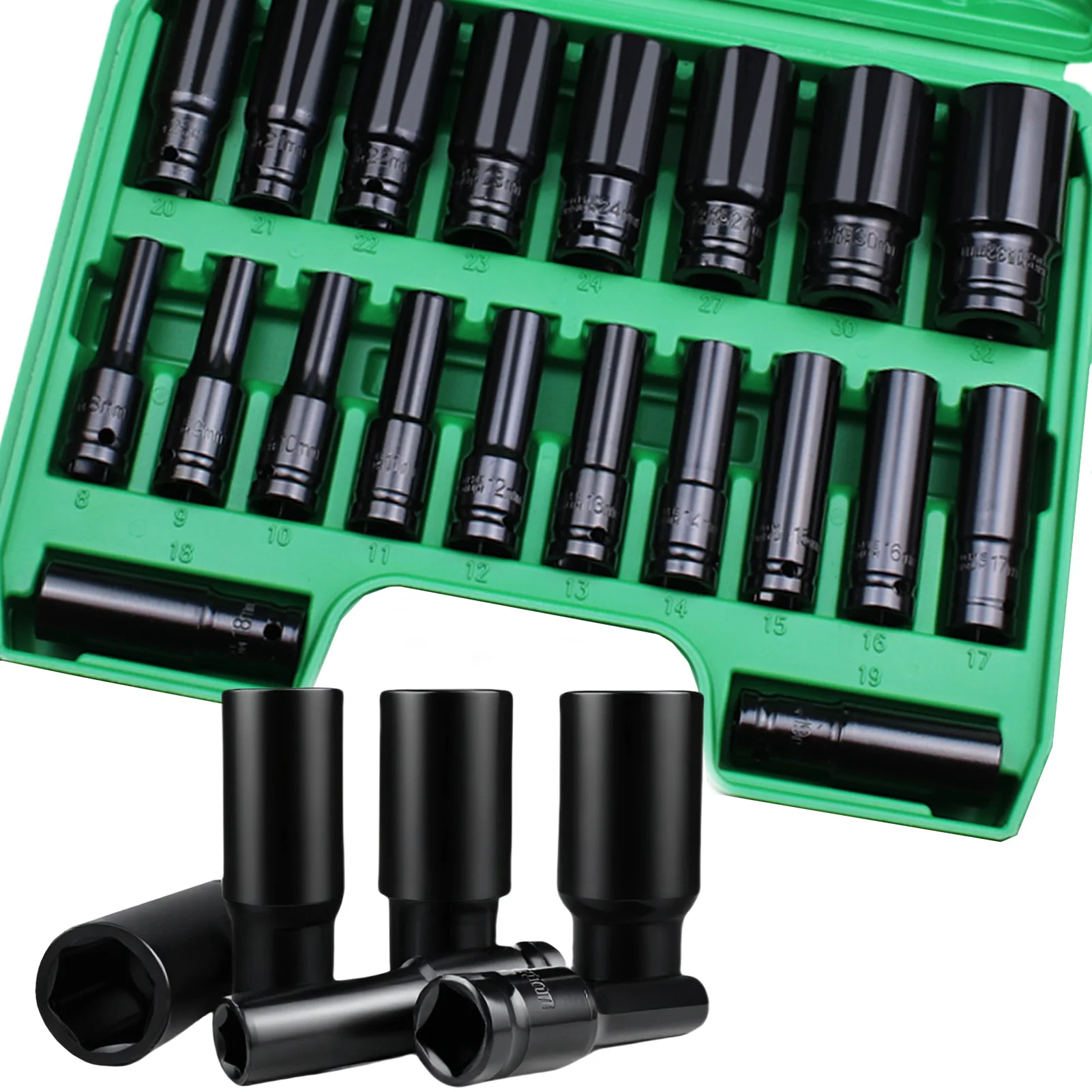 1/2 Inch Drive 6-Point Impact Socket Set 12-20 pcs 8-32mm Metric Sizes