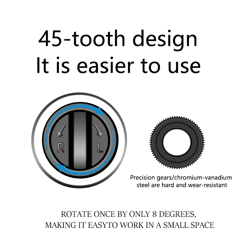 - Gear Transmission: 1/4 drive with 43 teeth, 3/8 and 1/2 drive with 45 teeth