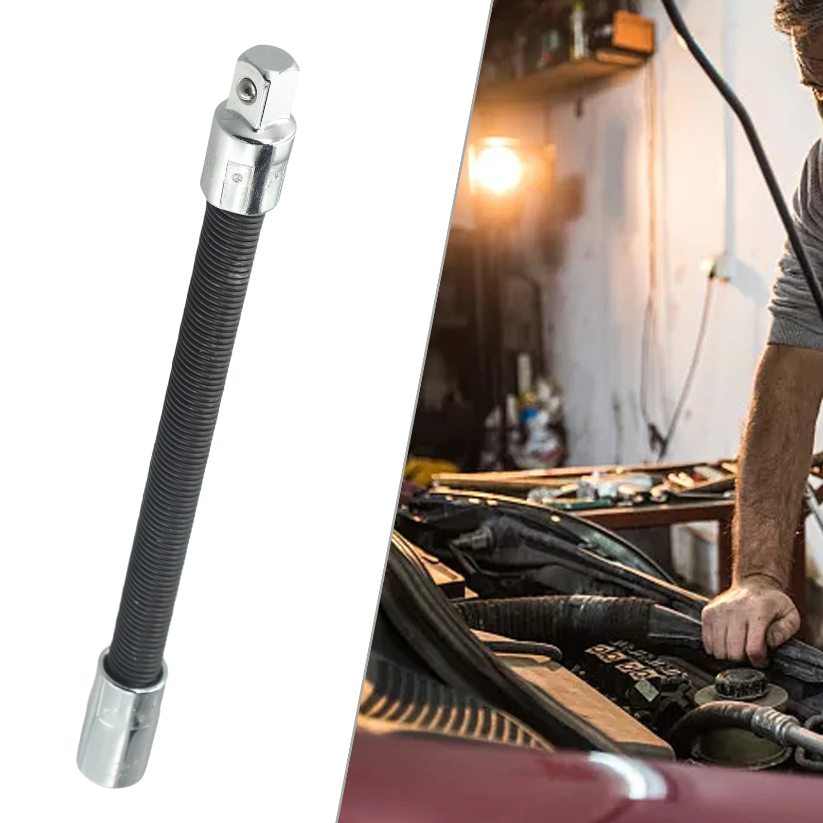 This extension rod adapter is designed for use with ratchet wrenches, square interface wrenches, or electric drills. It allows for 360° rotation, making it ideal for accessing narrow spaces at various angles.