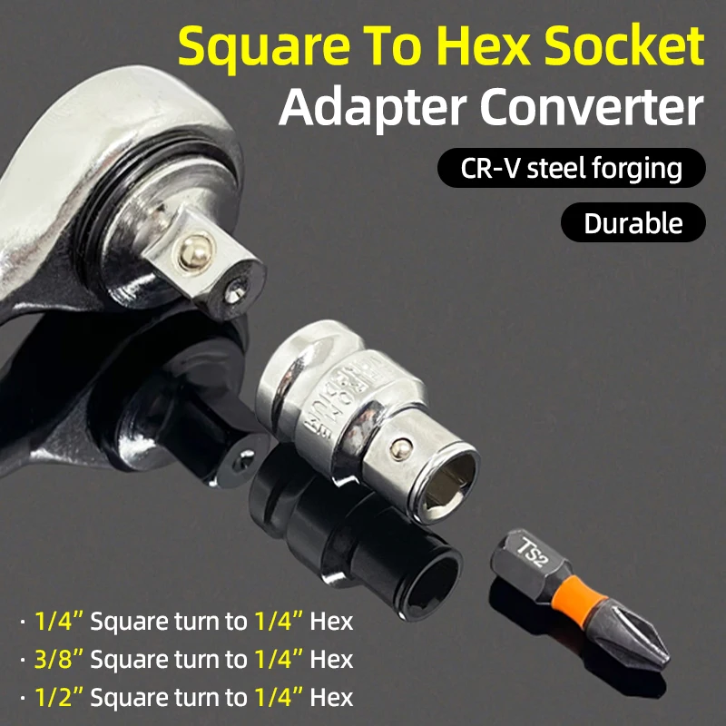 - Name: 1/4″, 3/8″, 1/2″ Square Drive to 1/4″ Hex Socket Adapter Converter