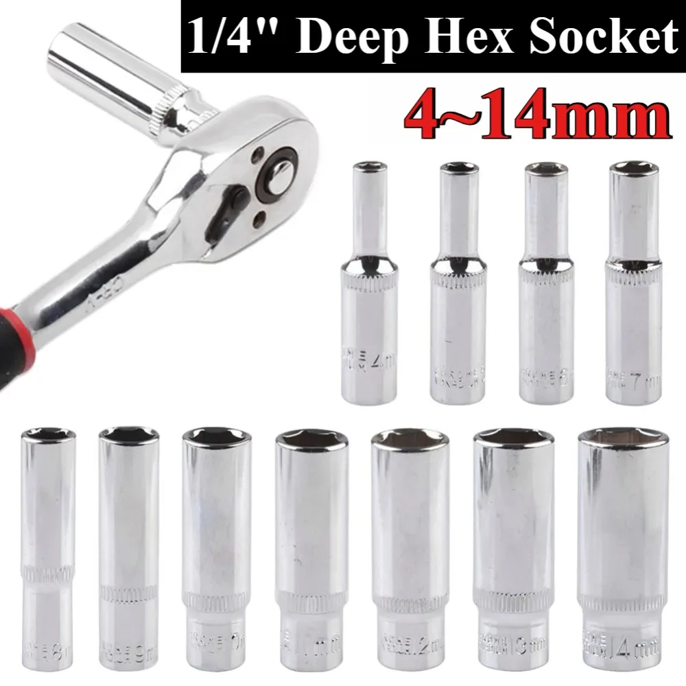1/4inch Single Extension Hexagon Socket 6/8/10/13/14mm Chrome Vanadium Steel
