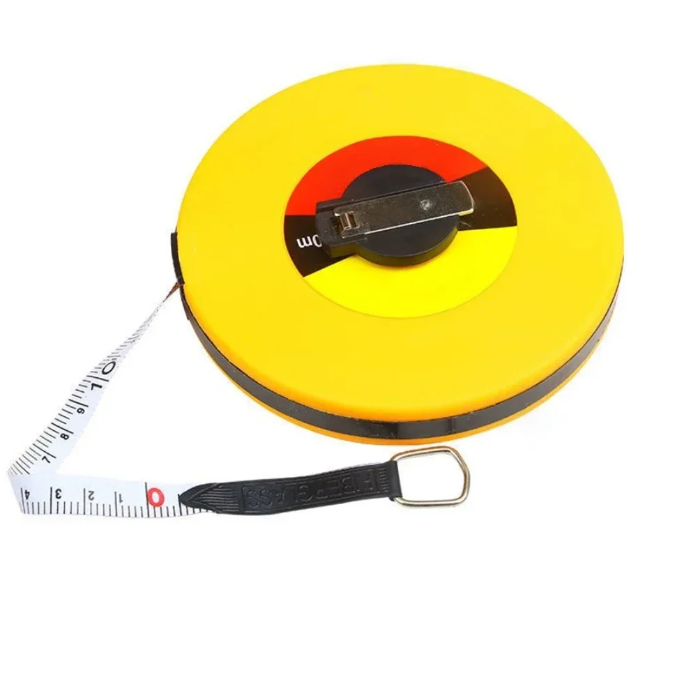 This 10-100M Long Fiberglass Tape Measure is designed for precise measurements in various construction and carpentry tasks. Its double-faced metric scale allows for easy reading from both sides, making it a versatile tool for professionals and DIY enthusiasts alike.