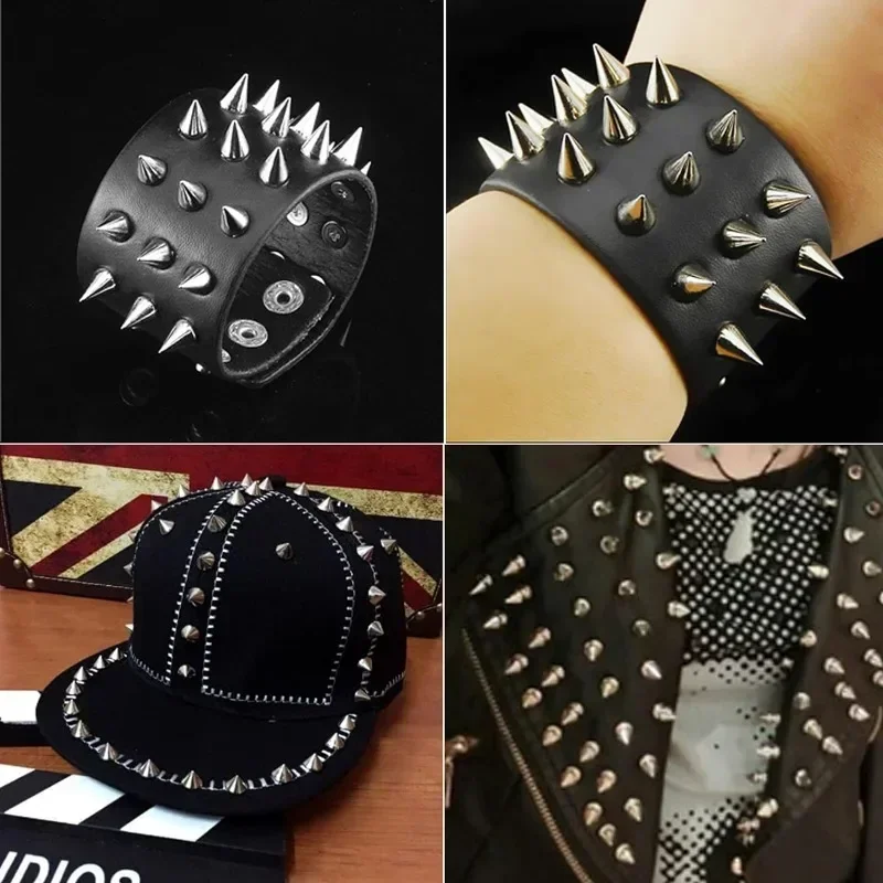 These punk rivets are perfect for adding a cool and edgy touch to your DIY projects. Made from durable zinc alloy, these silver cone spikes are ideal for decorating clothing, bags, shoes, and belts. Available in various sizes and quantities, they are a must-have for any craft enthusiast.