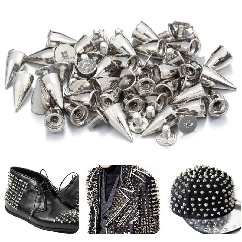10/100PCS Round Cone Rivets Spikes Metal Screwback Studs for DIY Leather Craft and Garment Decoration