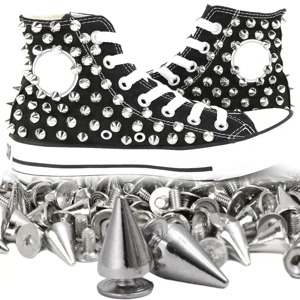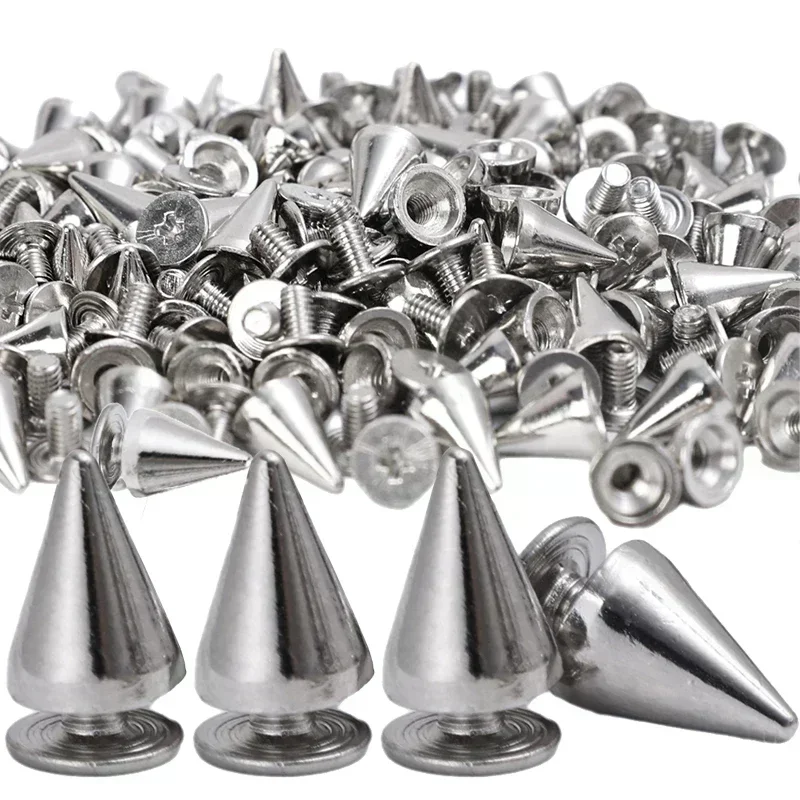 These silver rivets are perfect for adding a punk style to your DIY projects. Ideal for decorating clothing, shoes, bags, and accessories, these cone studs are a versatile addition to your handcraft supplies.