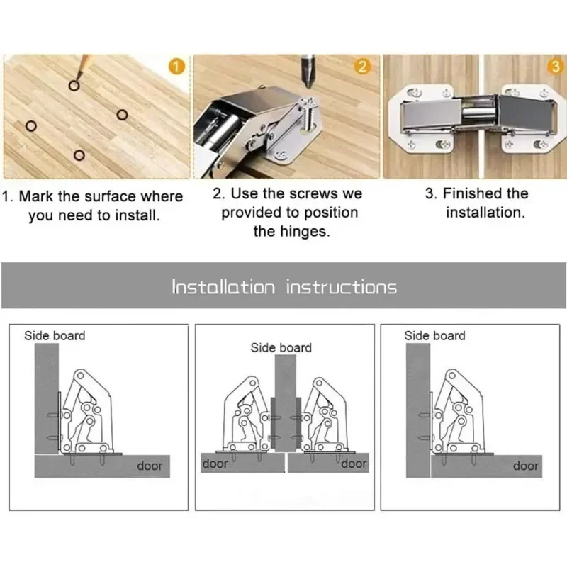 Introducing our 90 Degree Steel Cabinet Hinges, designed for easy installation without the need for drilling. These hydraulic buffer hinges are perfect for kitchen cabinets and cupboards, providing a smooth and soft close for your furniture.