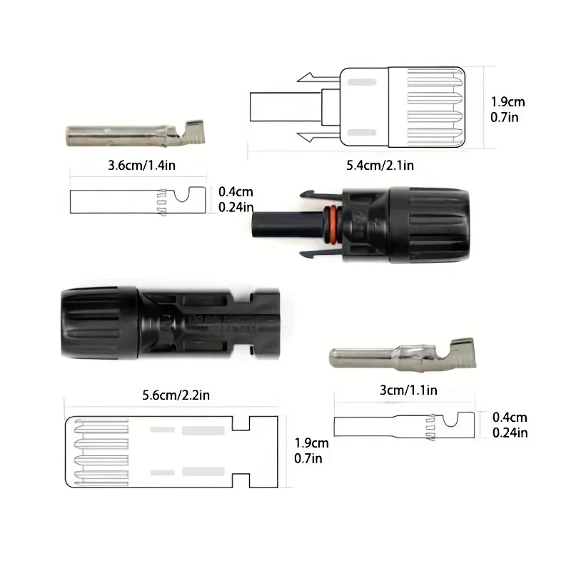 These Photovoltaic Connectors are designed for solar cable connections, providing reliable and waterproof performance for outdoor use. Available in various quantities, they are suitable for cables with cross-sectional areas of 2.5mm² to 6mm², making them a versatile choice for solar power applications.