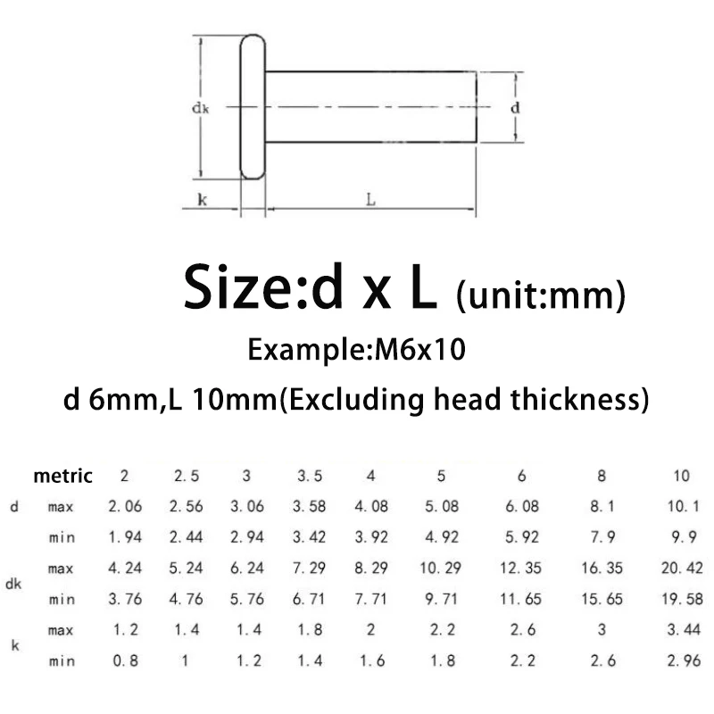 - Specifications: Diameter x Length (e.g., M6x30 means diameter 6mm and length 30mm, excluding head thickness)