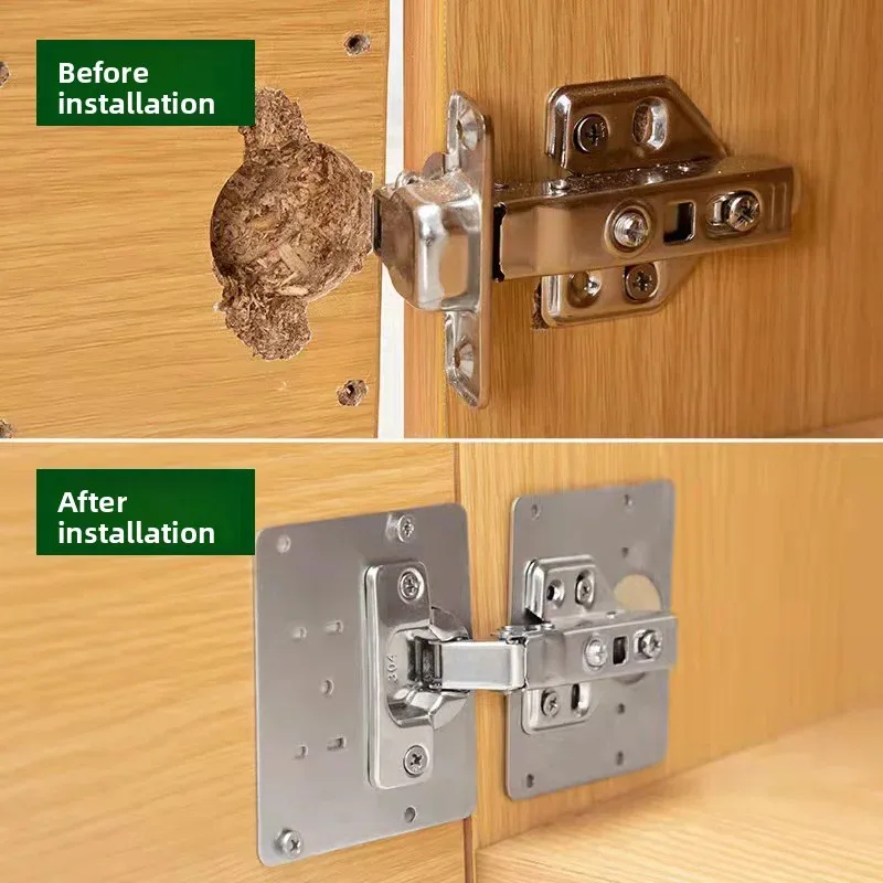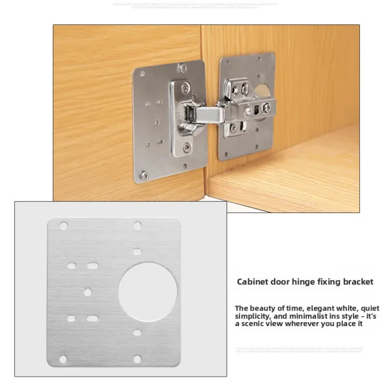 This set of stainless steel hinge repair plates is designed for furniture cabinet and drawer repairs. It provides a sturdy and reliable solution for fixing hinges, ensuring your furniture remains functional and aesthetically pleasing.