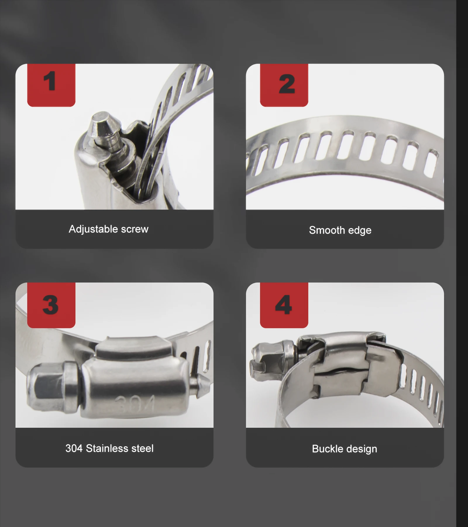 - 10-30pcs of Adjustable Stainless Steel Hose Clamps.