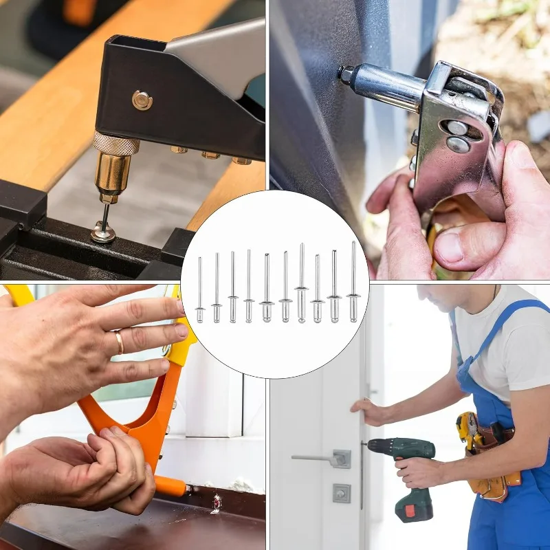 This assortment kit includes 10/50 pieces of aluminum pop rivets, designed for various applications such as metal furniture, ductwork, and boat repairs. These rivets are easy to use and provide a strong, durable fastening solution.
