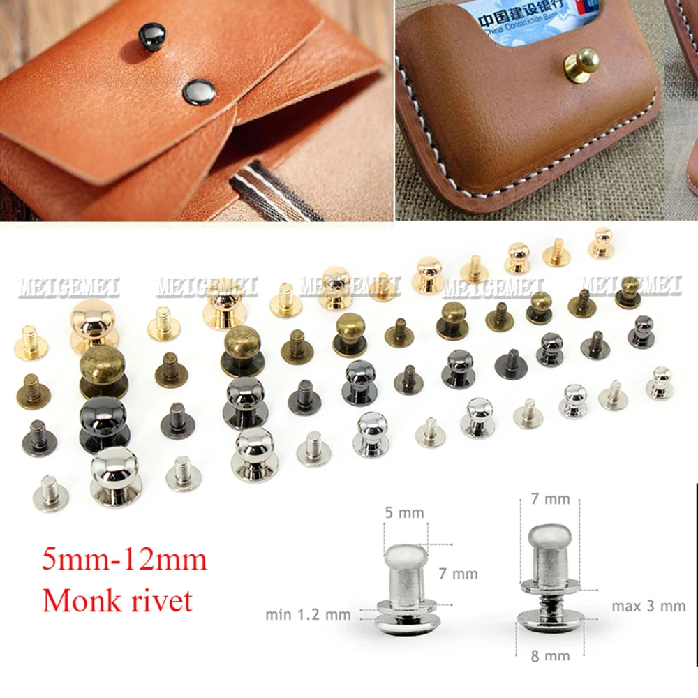 These 10 sets of metal alloy knob screw rivets are perfect for DIY crafts, leather belts, and watchbands. They feature a round monk head design and are ideal for adding decorative elements to your projects.