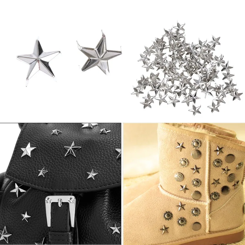 These metal star rivets are perfect for adding a punk rock flair to your DIY projects. Ideal for decorating clothes, shoes, bags, and other crafts, these decorative spikes will enhance your creations with a stylish touch.