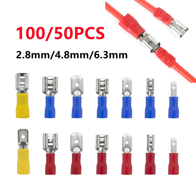 100 50pcs 2.8mm 4.8mm 6.3mm Male Female Spade Terminal Cable Connector