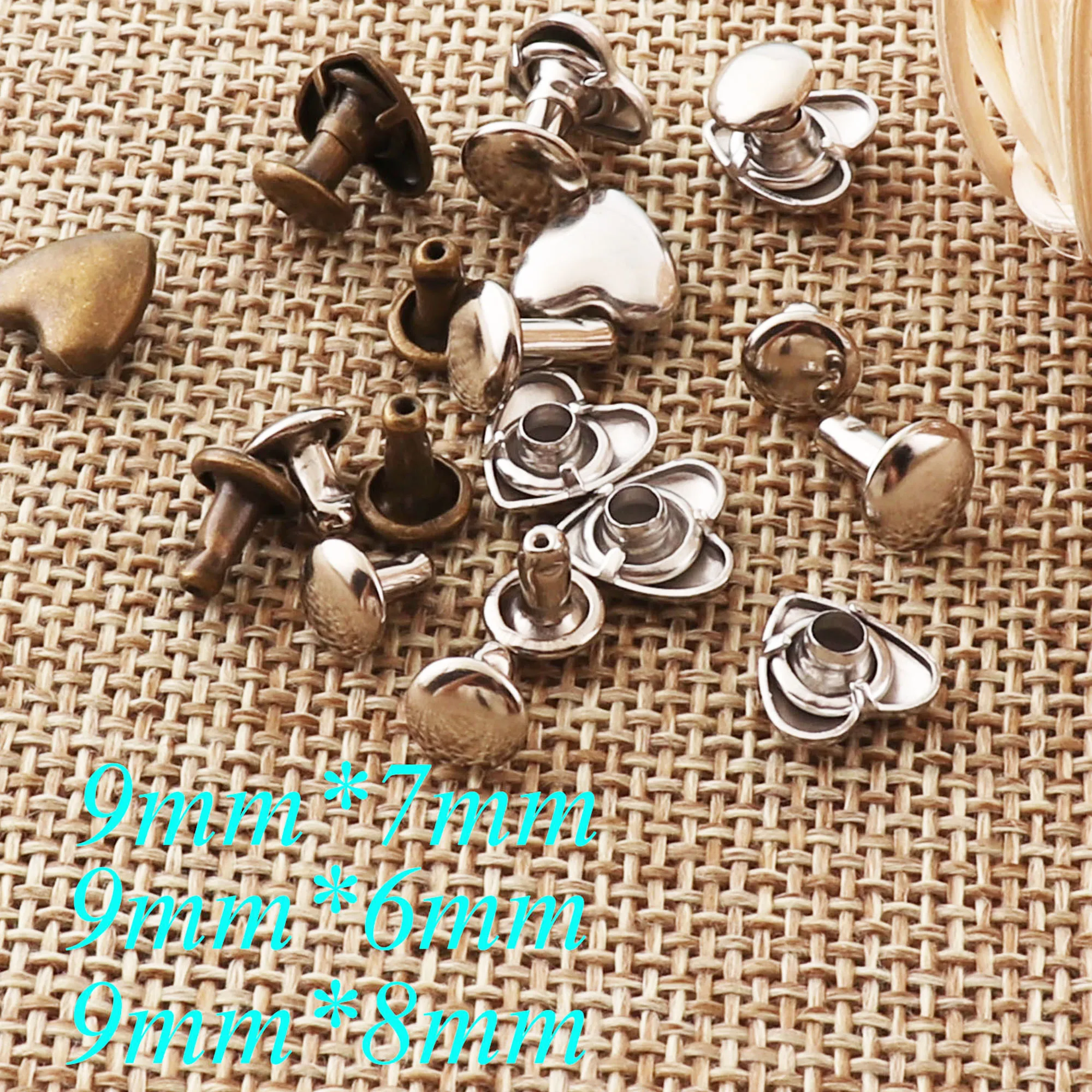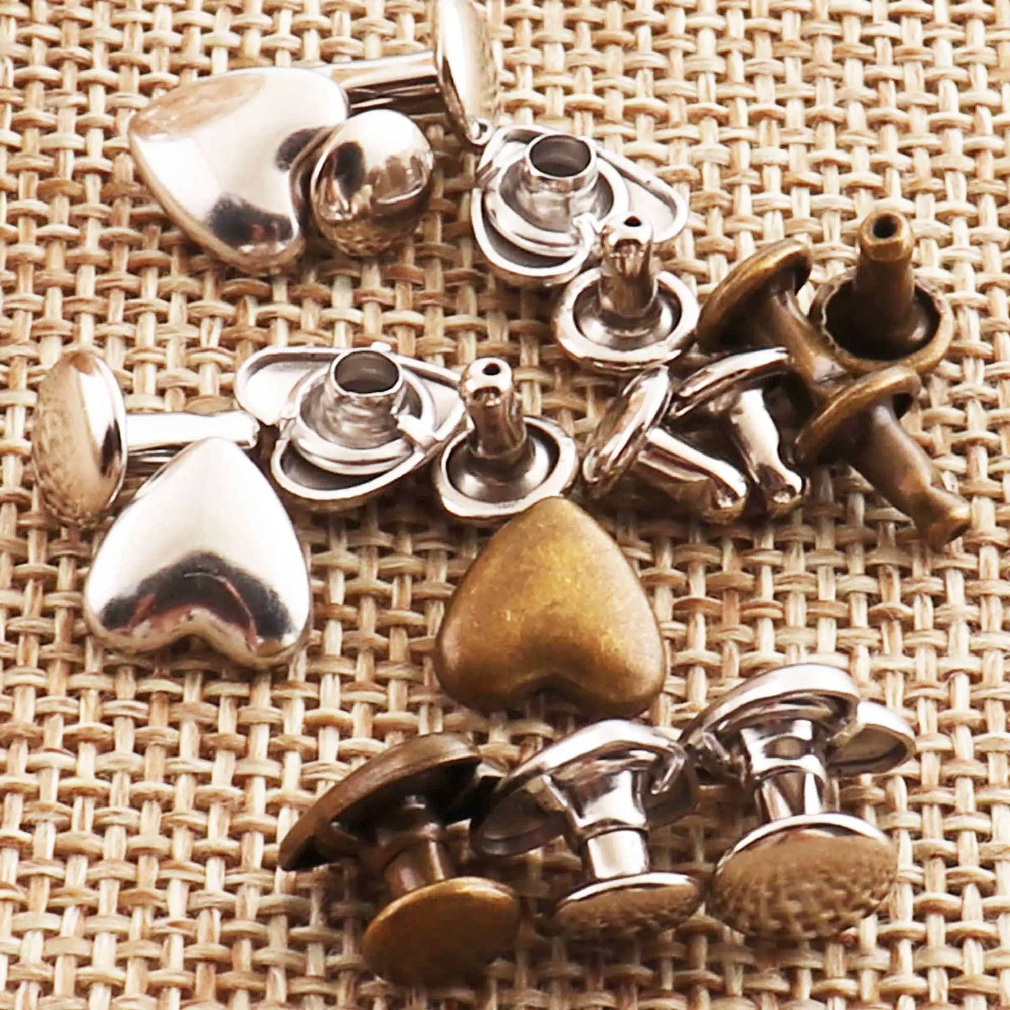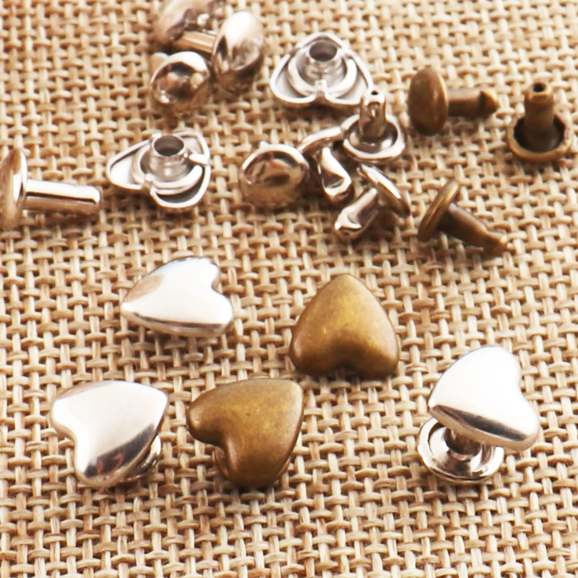 100 PCS Heart Antique Bronze Silver Double Cap Rivets Studs Leather Craft Fastener