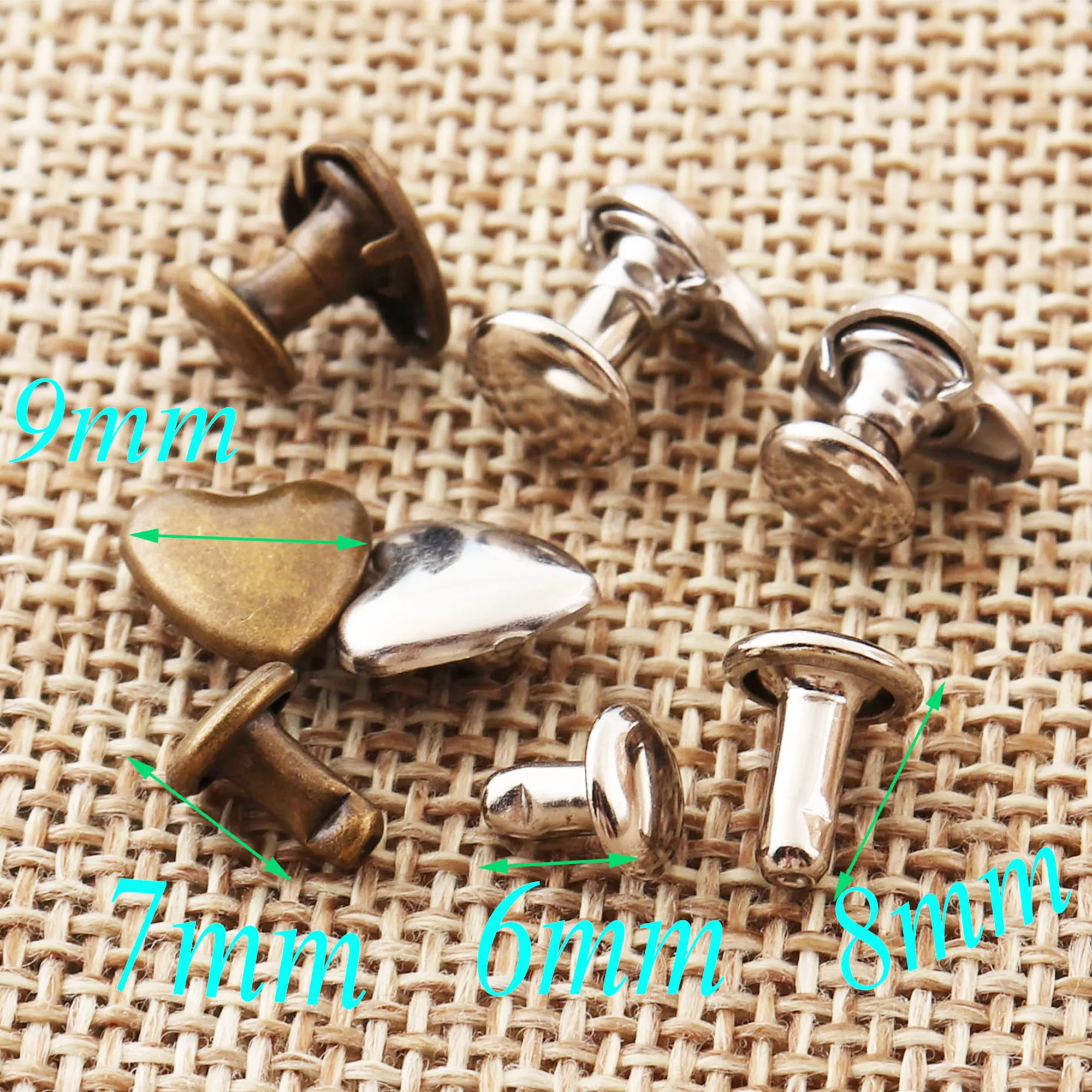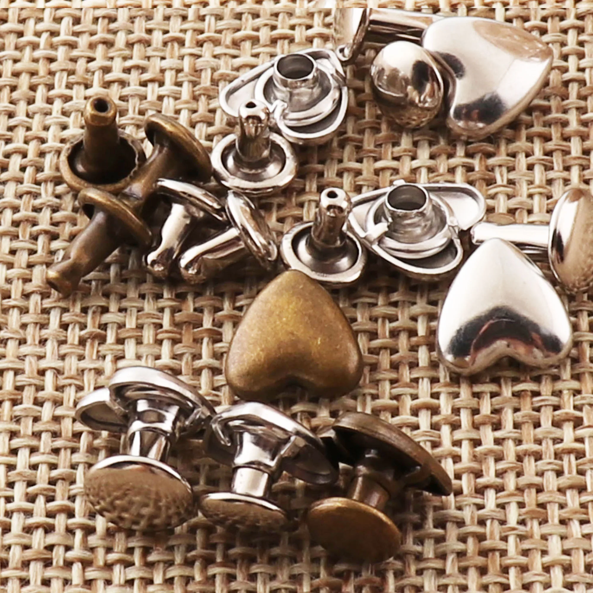 100 PCS Heart Antique Bronze/Silver Double Cap Rivets are perfect for your leather craft projects. These rivets are designed to provide a secure fastening solution for bags, purses, and other leather items, adding a decorative touch to your creations.