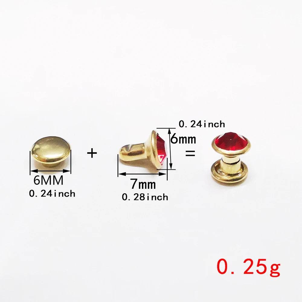 These mixed color crystal rivets are perfect for adding a decorative touch to your leather crafts. Ideal for use on bags, shoes, belts, jackets, dog collars, and garments, these rivets will enhance your DIY projects.
