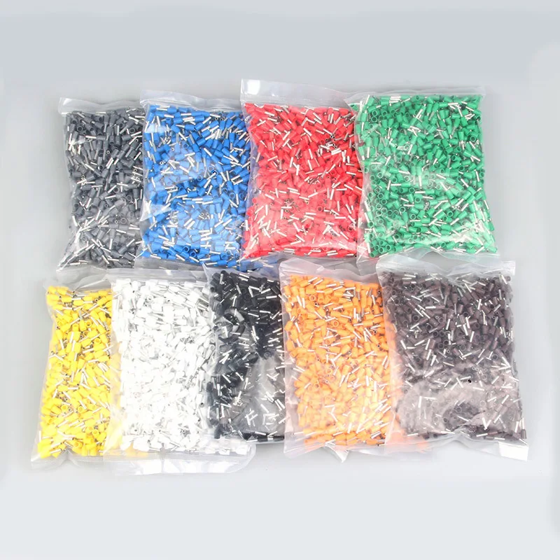 1000Pcs Insulated Tubular Terminal European Style Cold Pressed Terminal End Wire Connector Electrical Crimp Terminator