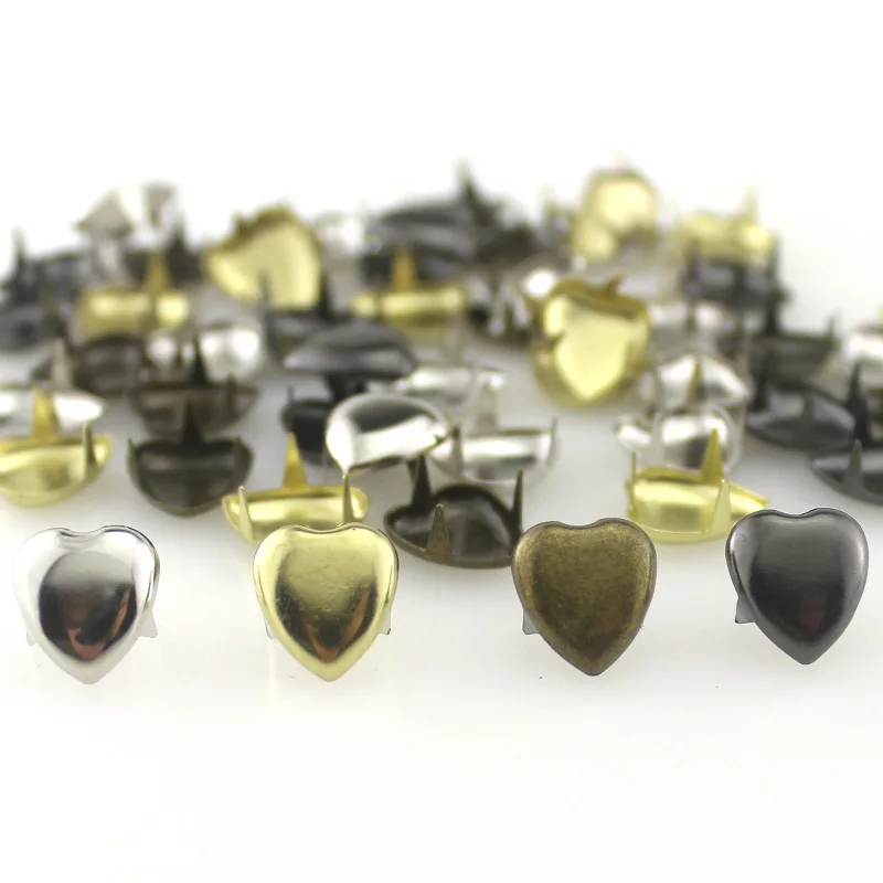 100Pcs Diameter 10mm Heart Shape Studs for Clothing Silver Punk Rock Claws Rivets Leathercrafts Accessory