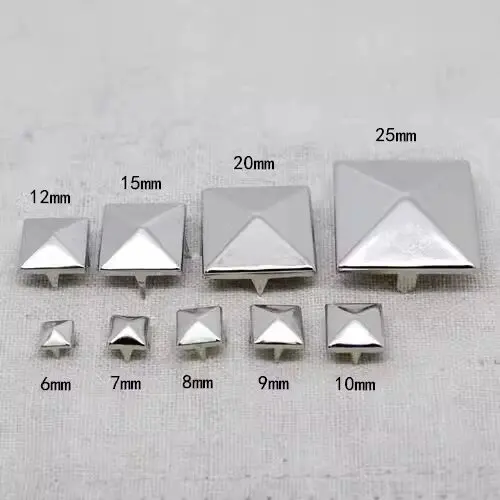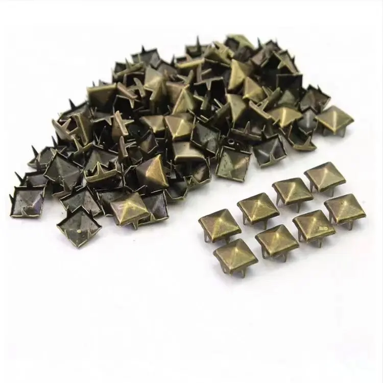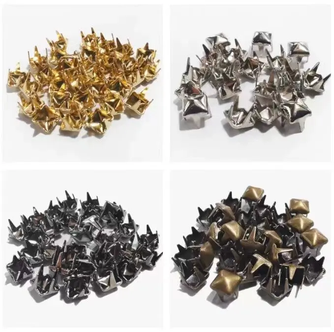 Introducing our 100pcs Square Metal Spikes, perfect for adding a punk flair to your clothing, shoes, bags, and other leather crafts. These claw pyramid rivets are designed for DIY enthusiasts looking to enhance their projects with stylish metal accents.