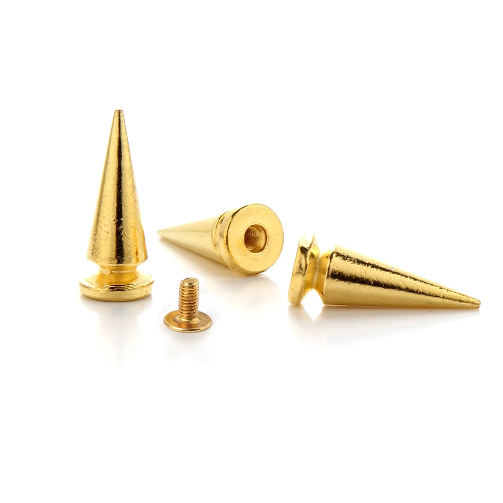 Introducing the 100 sets of 24mm Golden Spots Tree Spikes Rivet Studs, perfect for punk jewelry making and leather craft projects. These spikes come with screws for easy application and are designed to enhance your DIY creations.