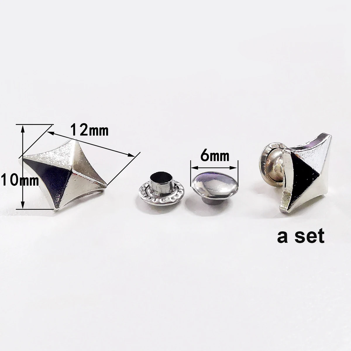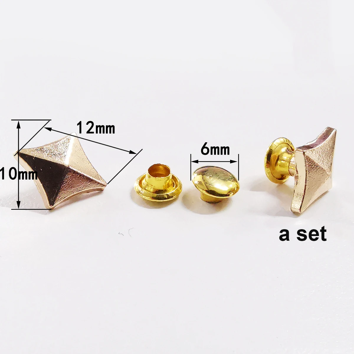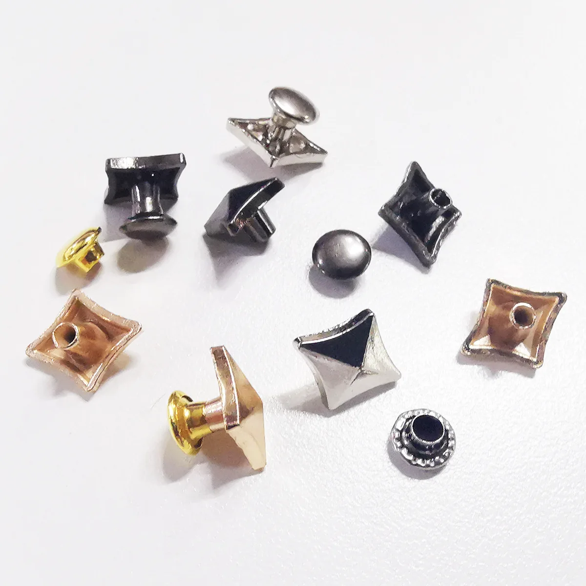 - Package Content: 100 sets of metal rhombus rivets