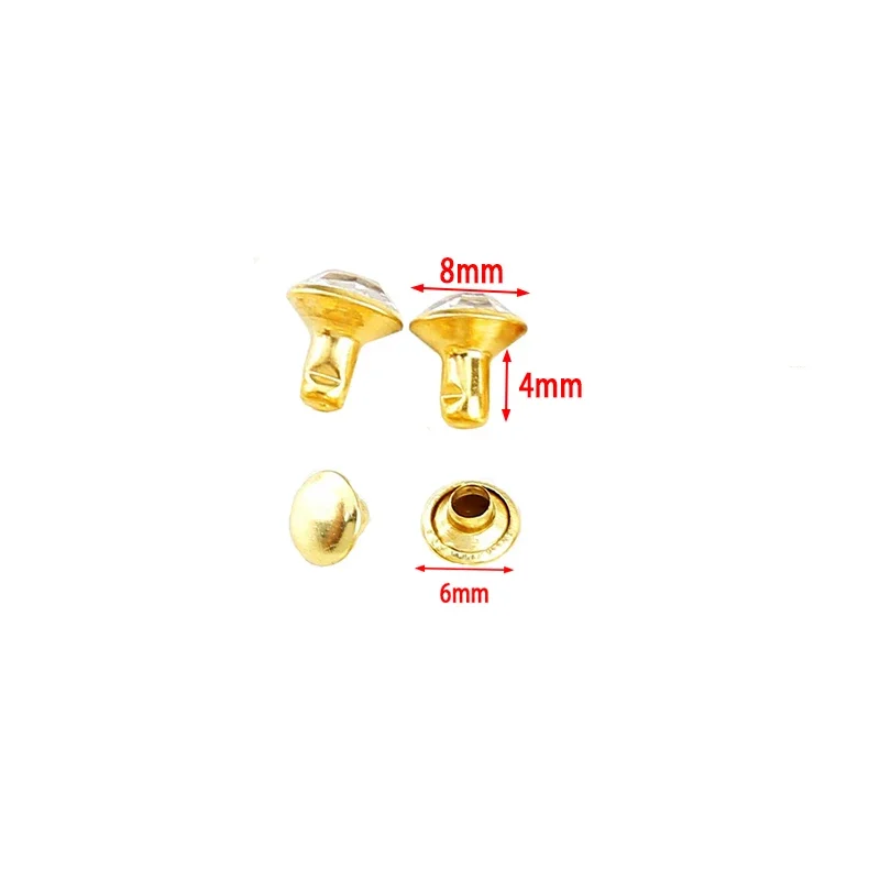 - 100 Sets of 8mm Golden Base Rhinestone Rivets