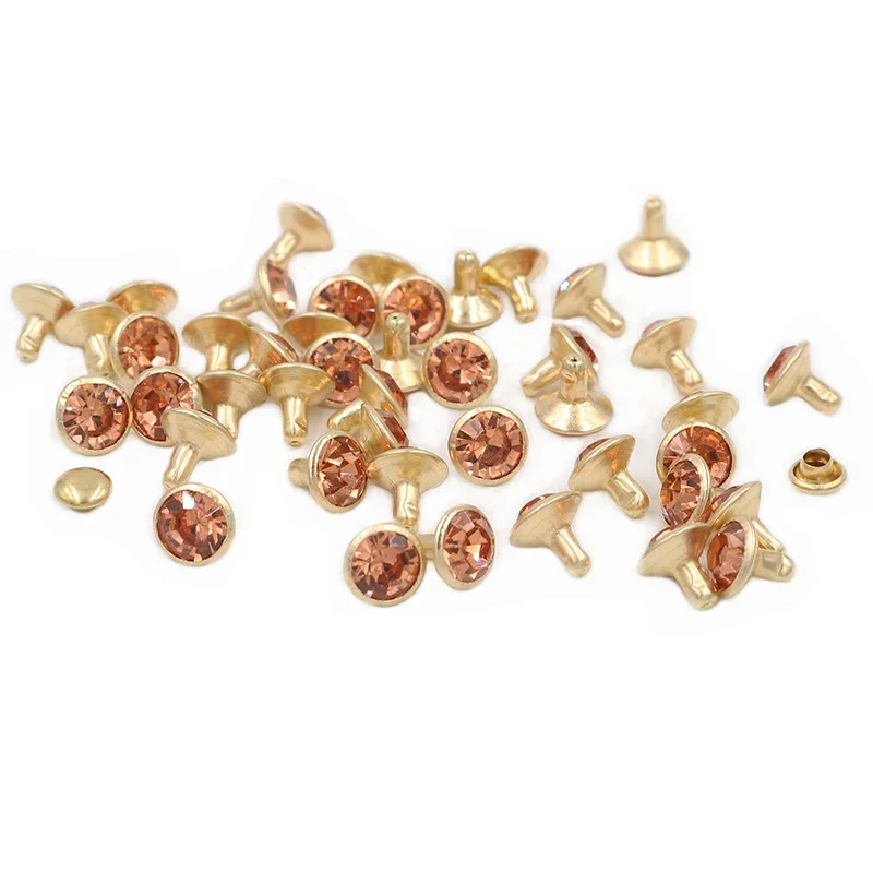 Each rivet features a golden base and a sparkling rhinestone, ensuring a vibrant and long-lasting shine. These rivets are easy to use and can enhance the look of any leathercraft project.