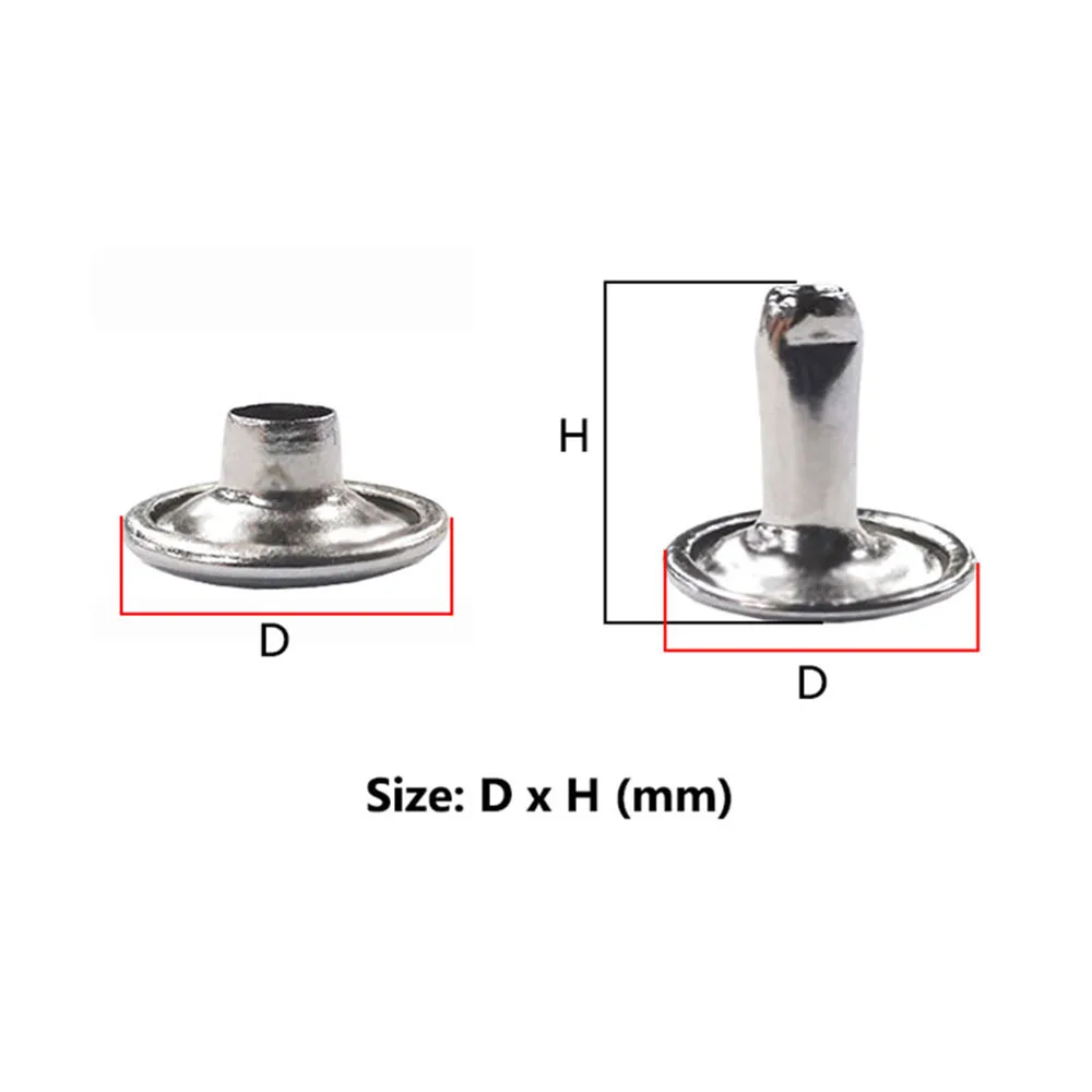 Introducing the 100 sets of Metal Double Cap Rivets, perfect for various leather crafting projects including bags, belts, clothing, shoes, and pet collars. These rivets provide a polished finish on both sides of your leather pieces, ensuring a professional look.