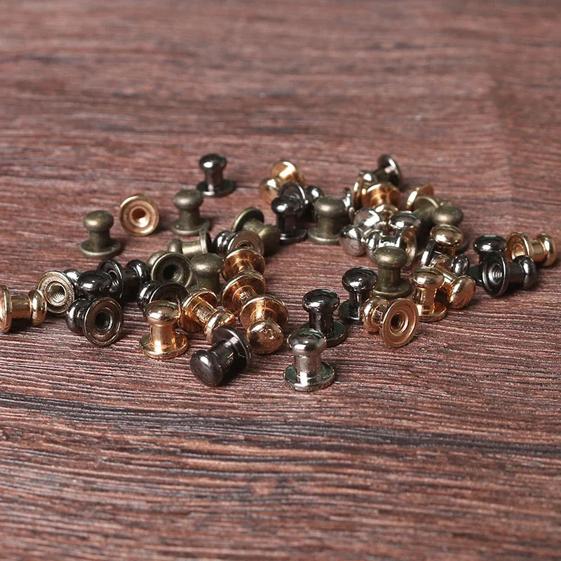 Introducing the 100 sets of Zinc Alloy Chicago Button Stud Head Pin Button Studs and Posts Spot Screwback Craft Leather Nail Rivets, perfect for various crafting and DIY projects.