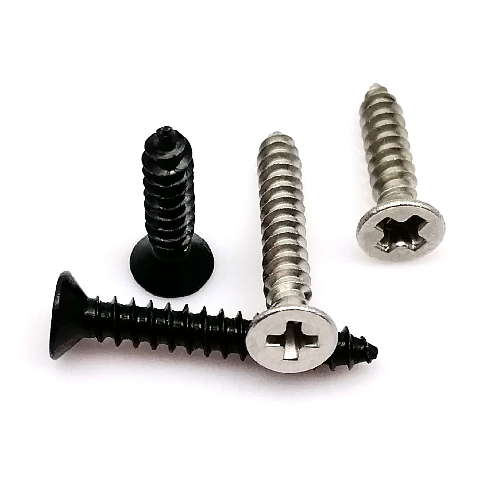This product includes a variety of small micro screws made from stainless steel and carbon steel, designed for various applications including woodworking. The screws feature a cross Phillips and flat countersunk head, making them suitable for self-tapping purposes.