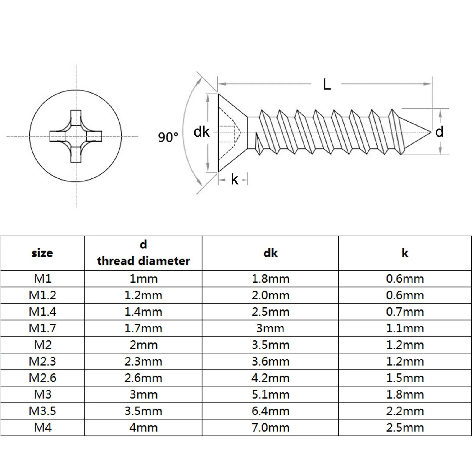 - Sizes: M1, M1.2, M1.4, M2, M2.6, M3, M4