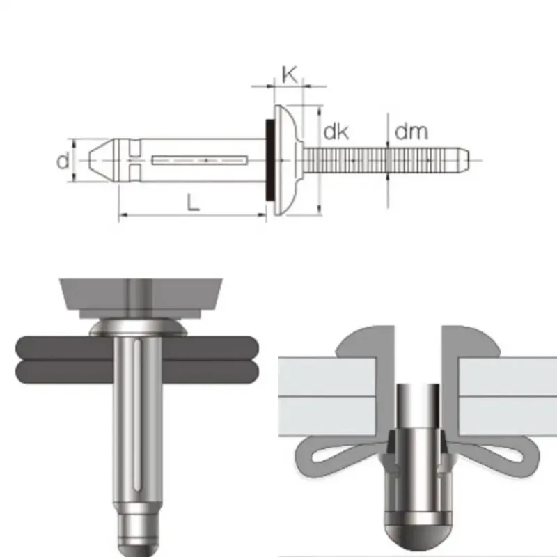 These trifold blind rivets are designed for high strength and waterproof applications. They are suitable for various uses in industries such as automotive and home decoration.