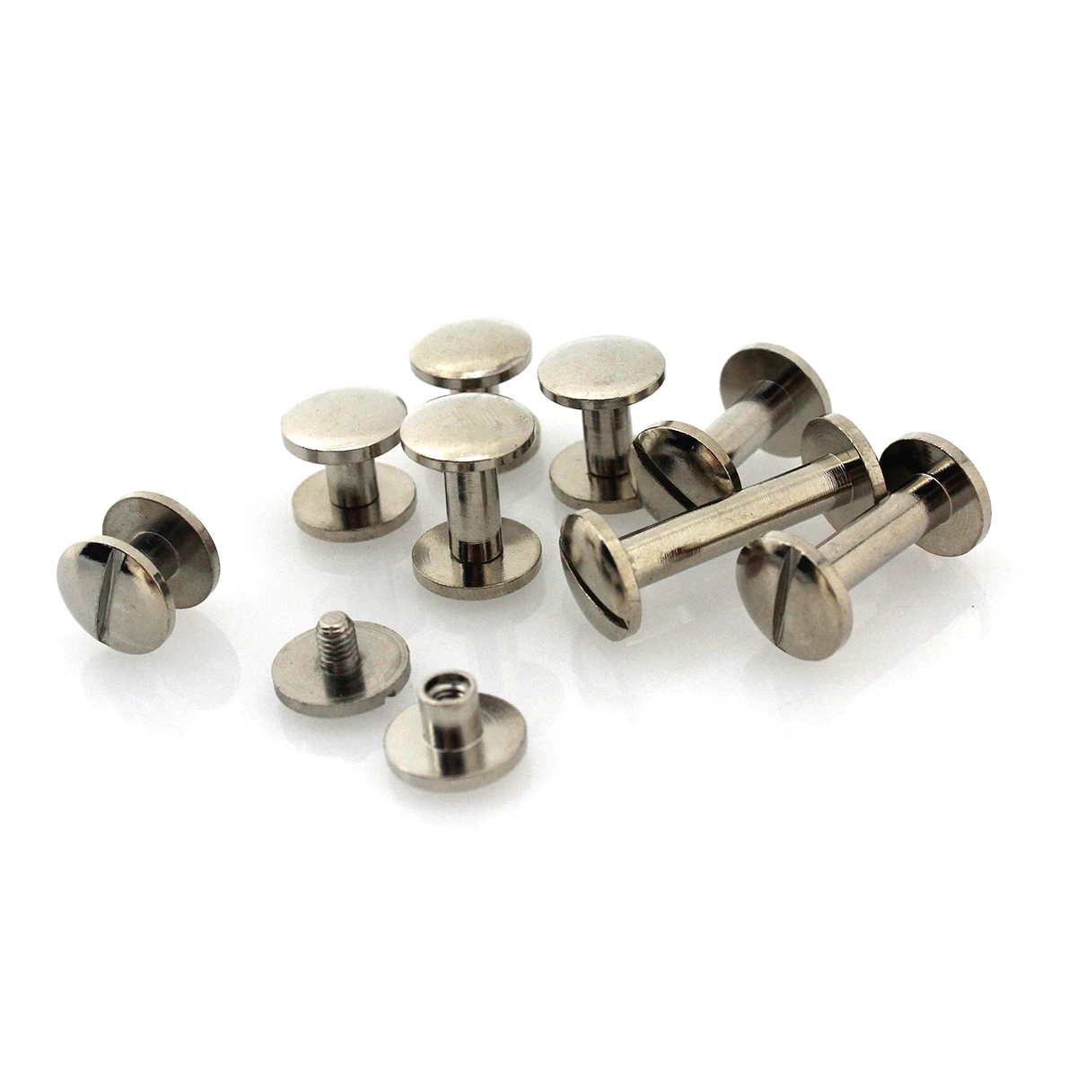 These Chicago screws are perfect for use in belts, cases, straps, and more. The threaded post allows you to easily open and reattach pieces as needed. Each unit includes one Chicago screw and one screw.