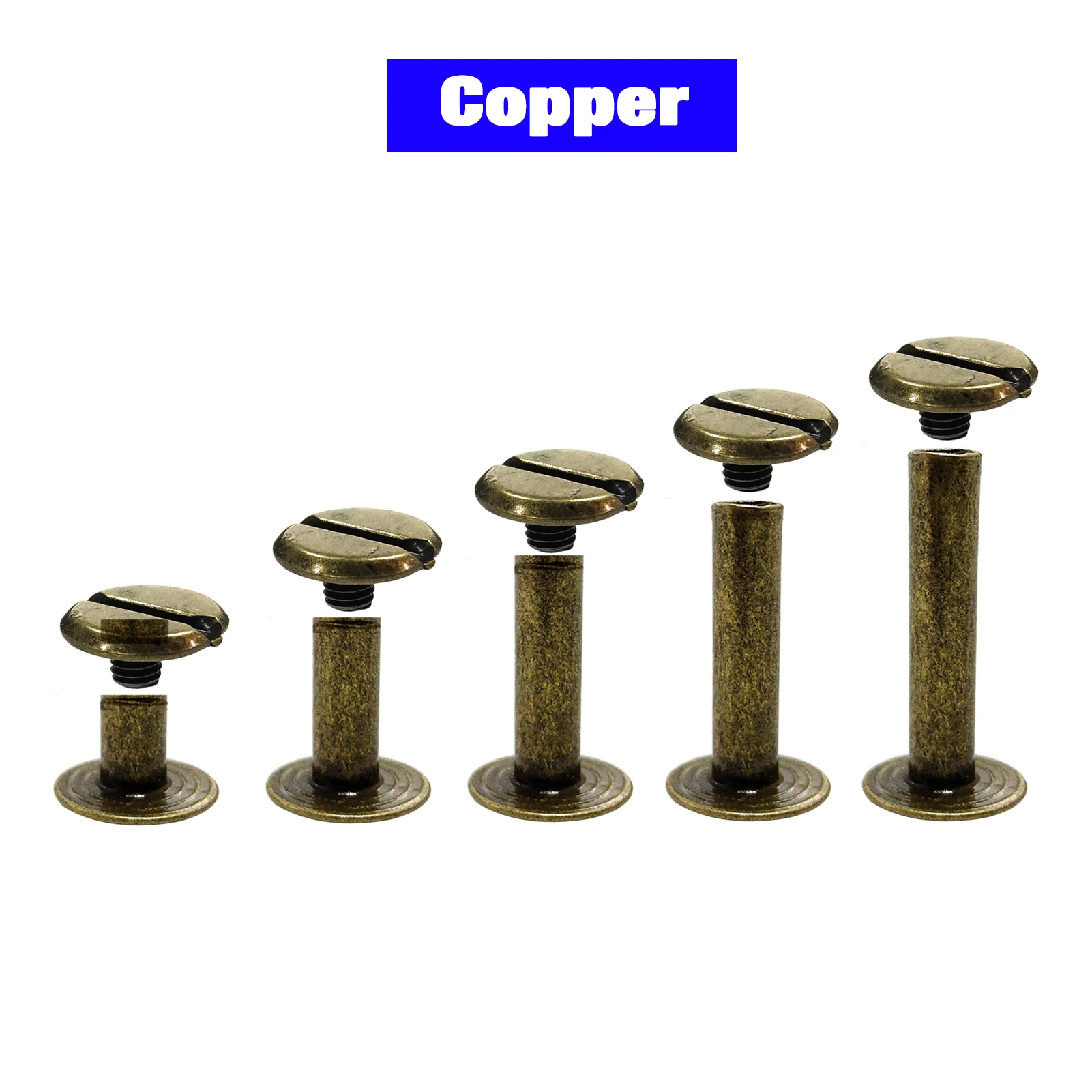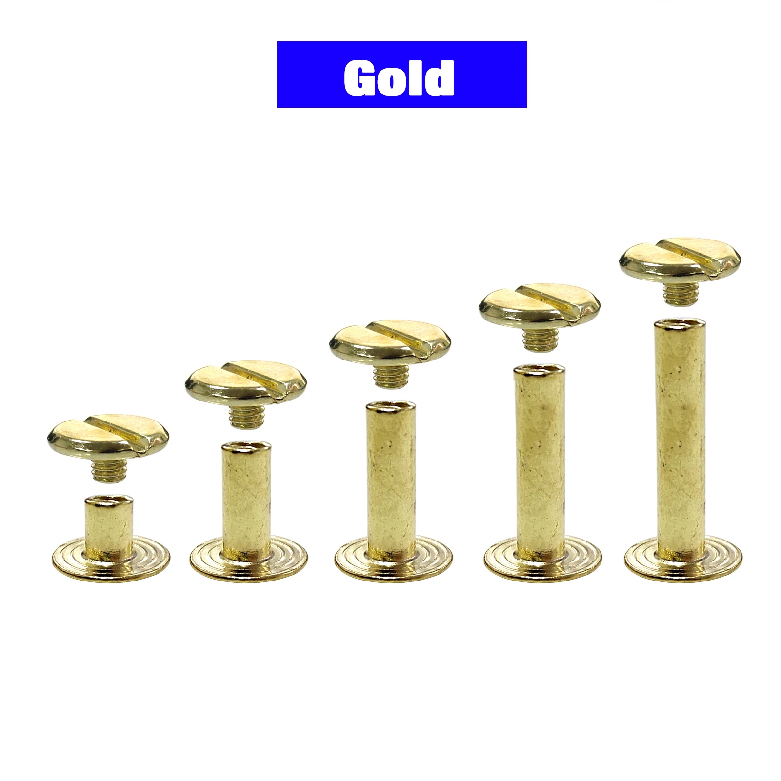 These Chicago screws are perfect for various leather craft projects, providing a secure and stylish fastening solution. Available in multiple colors, they are ideal for use in luggage, clothing, bags, straps, shoes, and belts.