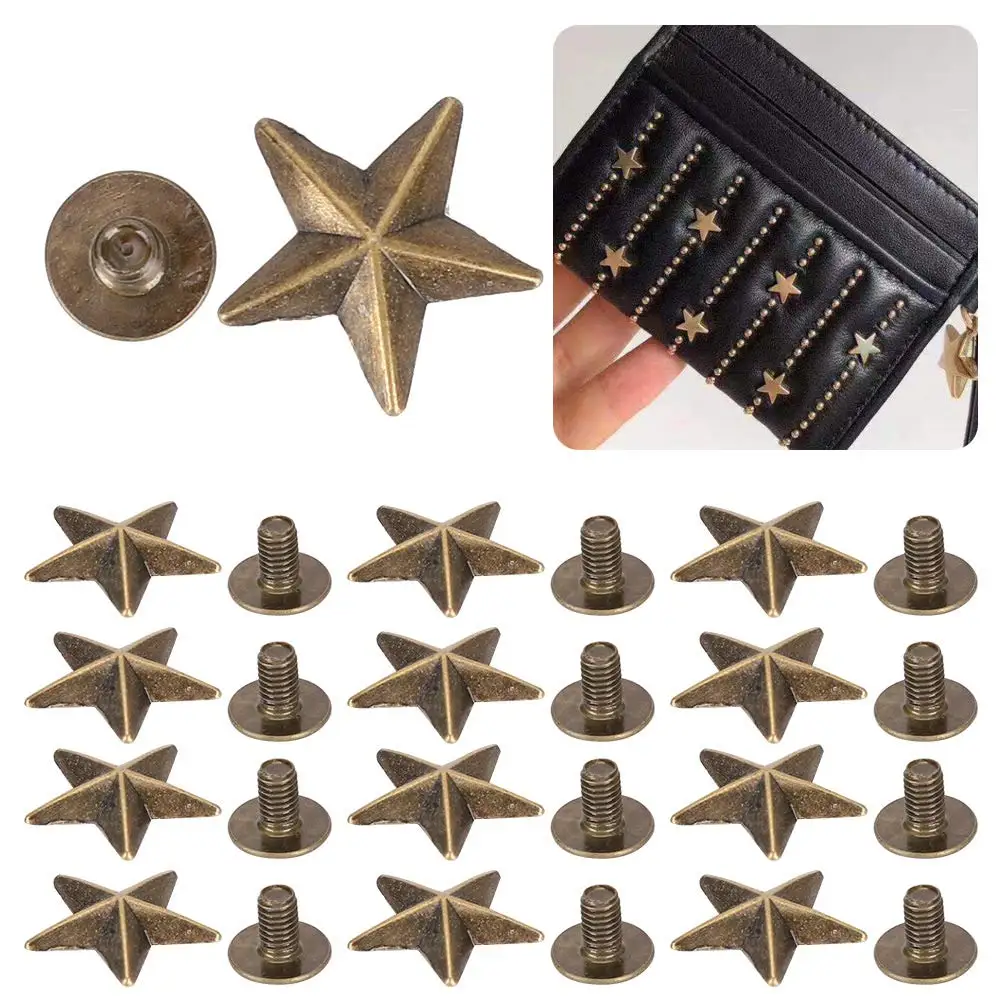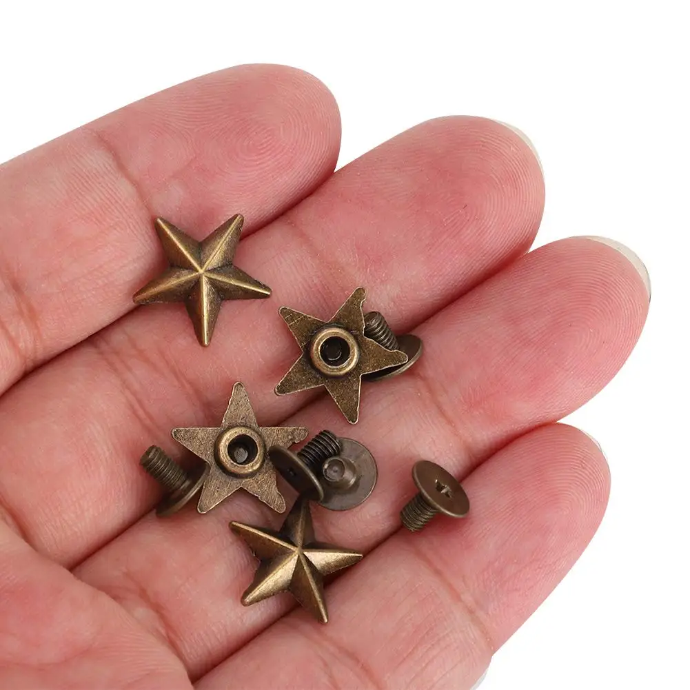10pcs Metal Star Studs Screw Rivets for DIY Clothes Belt Shoes Purse Leathercraft Decoration Accessories