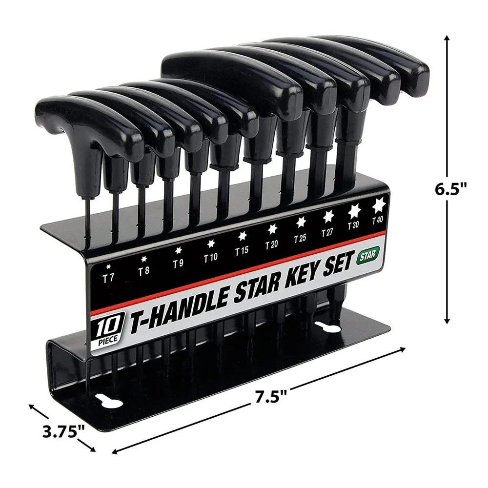 10pcs Metric or Inch T-Handle Hex Key Allen Wrench Tool Set or Star T-Handle Hex Key Set with Convenient Storage Stand.