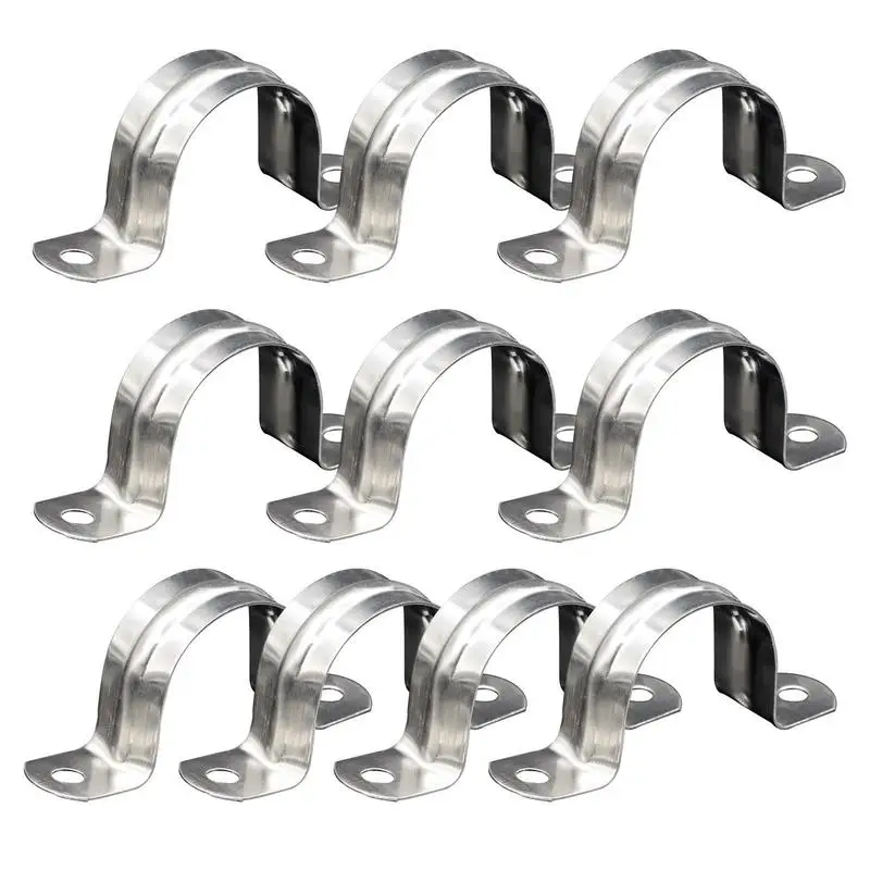 10pcs U Shape Pipe Clamps 20-60mm Stainless Steel Two Hole Strap Clip