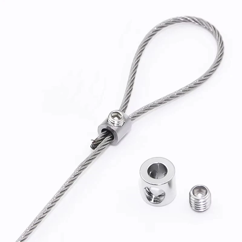 10pcs 1/2mm Steel Wire Rope Clip Stainless Steel Cable Copper Metal Hanging Clip Adjustable Screws Fixed Hardware Accessories