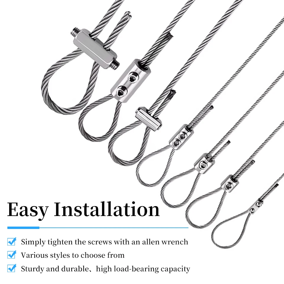 These steel wire rope clips are designed for durability and versatility. Made from high-quality materials, they are perfect for a variety of applications, including securing indoor lighting, hanging plants, and reinforcing outdoor structures.
