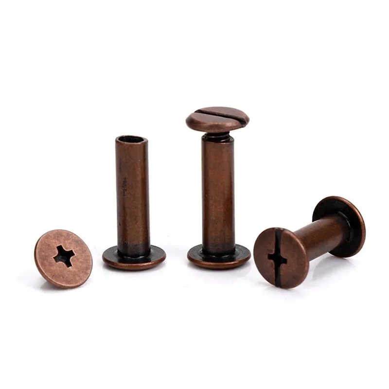 10 Sets of Steel Binding Chicago Screw Belt Screws Studs Rivets Nails for Photo Album Calendar Recipes Menu Fasteners in Copper Color.