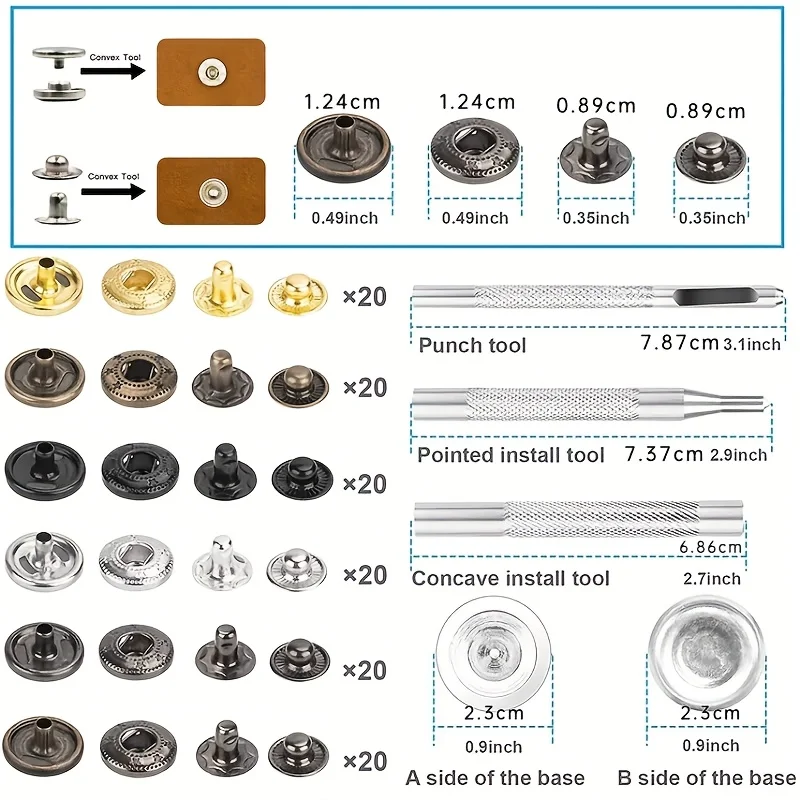 120 Sets Double Cap Leather Rivets with Fixing Tool Kit for Clothes, Shoes Decoration and Repair.