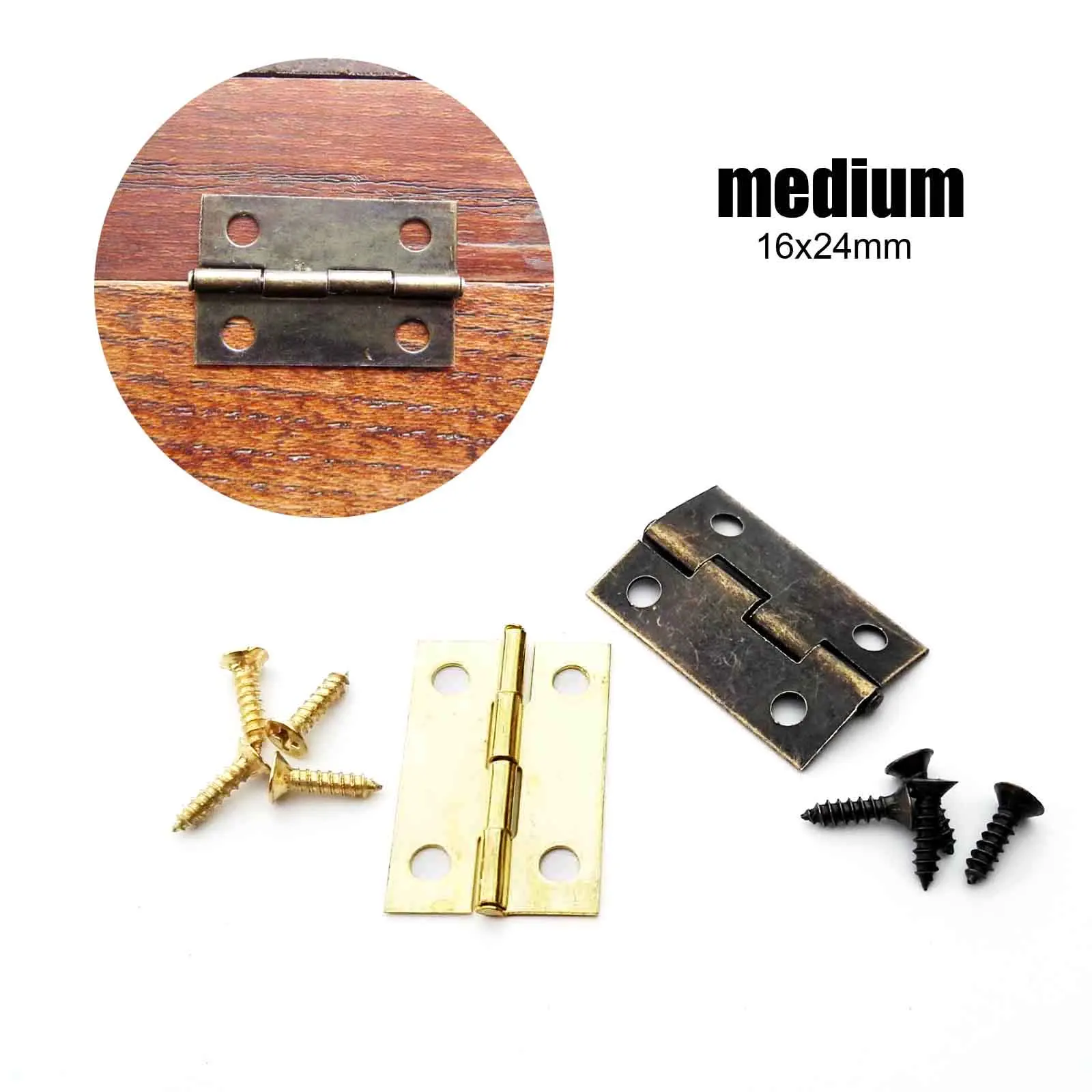 - Medium hinge size: Approximately 7/16″ (16mm) x 15/16″ (24mm), thickness: Approximately 0.5mm, material: iron.