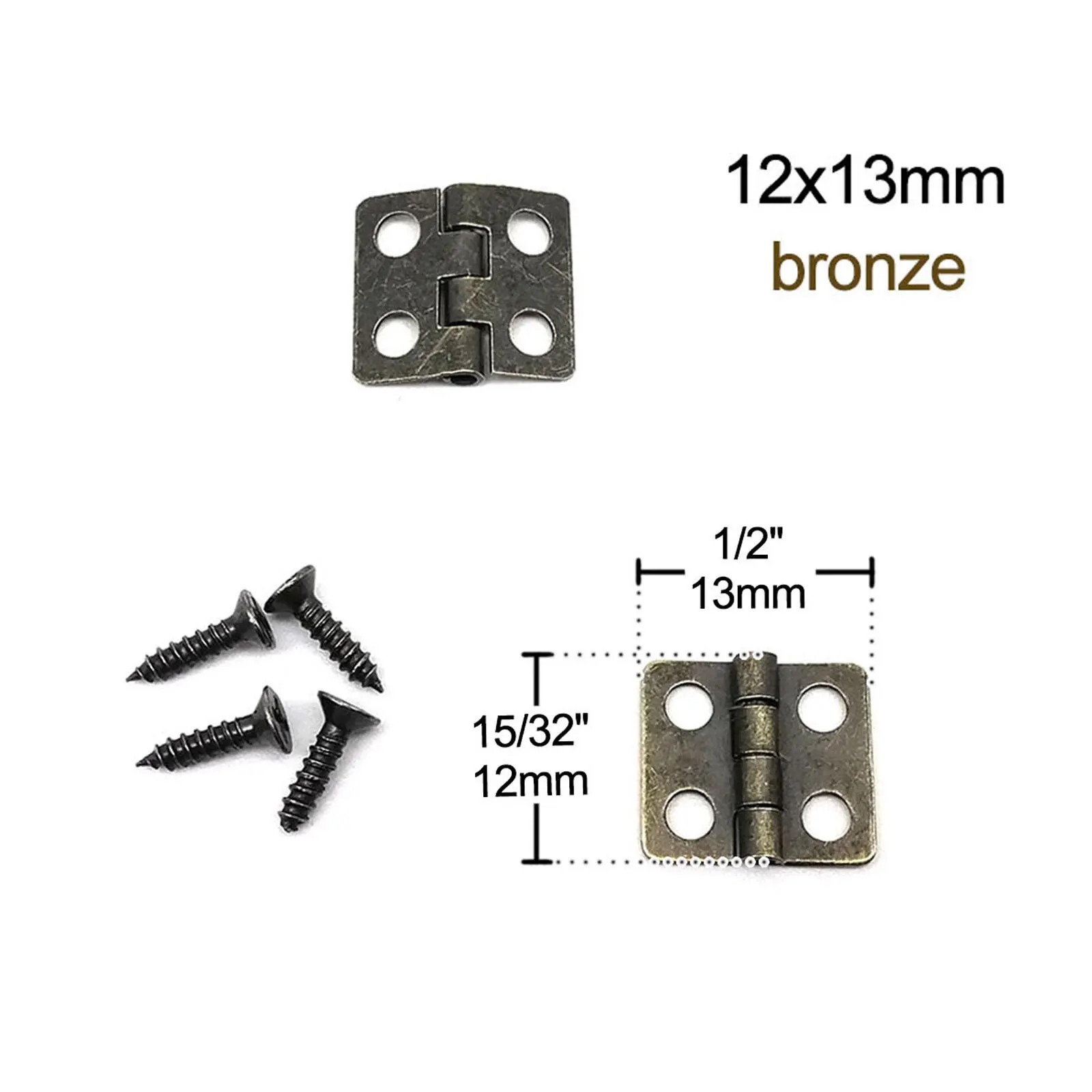 12pcs Mini Wooden Box Hinge with Screw for Jewelry Chest Gift Case 12x13mm