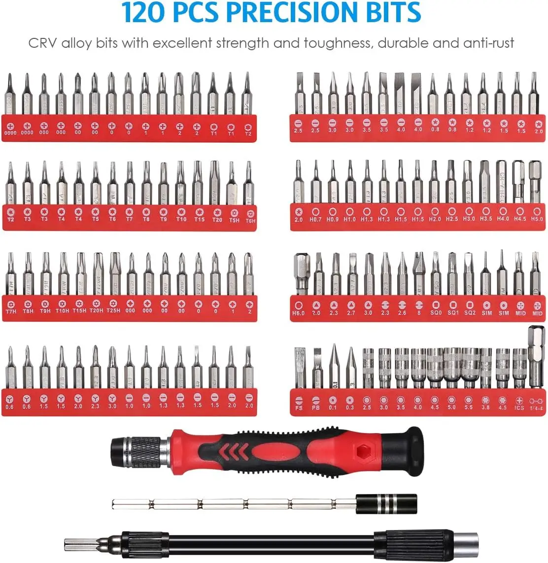 - 1 x Precision Screwdriver Set with 120 Bits.