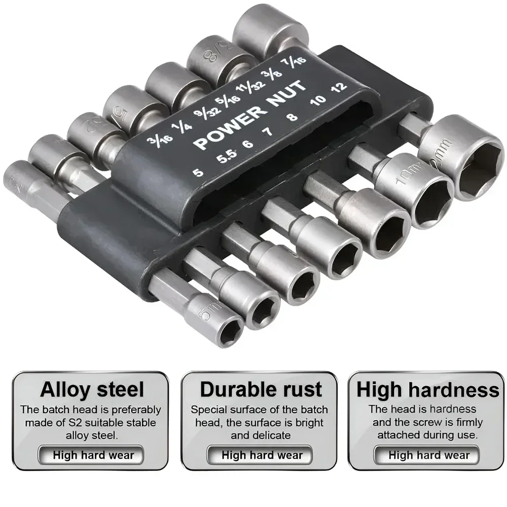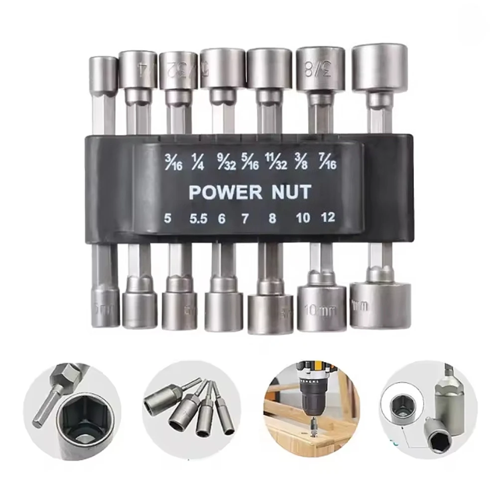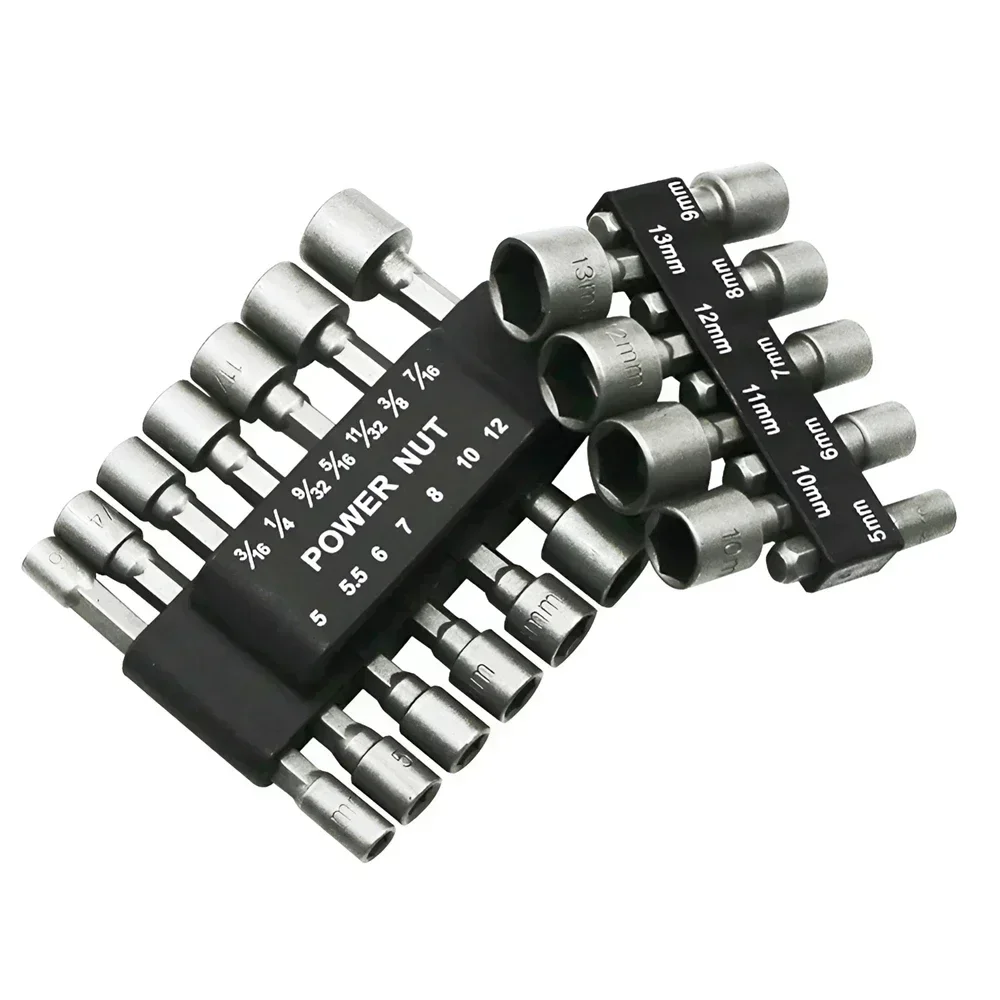 14PCS 5mm to 13mm Hex Socket Sleeve Nozzles Nut Driver Set Tools Adapter