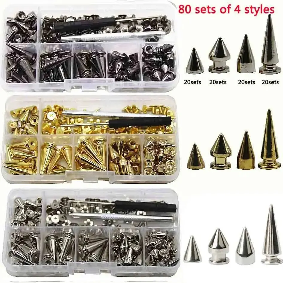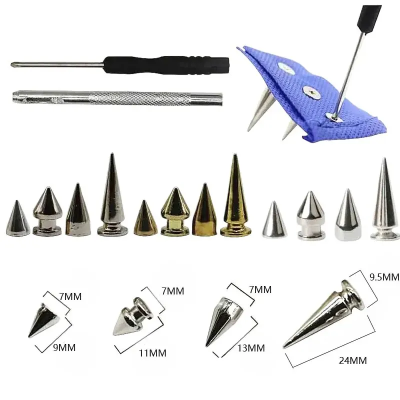 Rivets Kit with Tools for Leather Craft DIY Bullet Cone Spikes and Studs