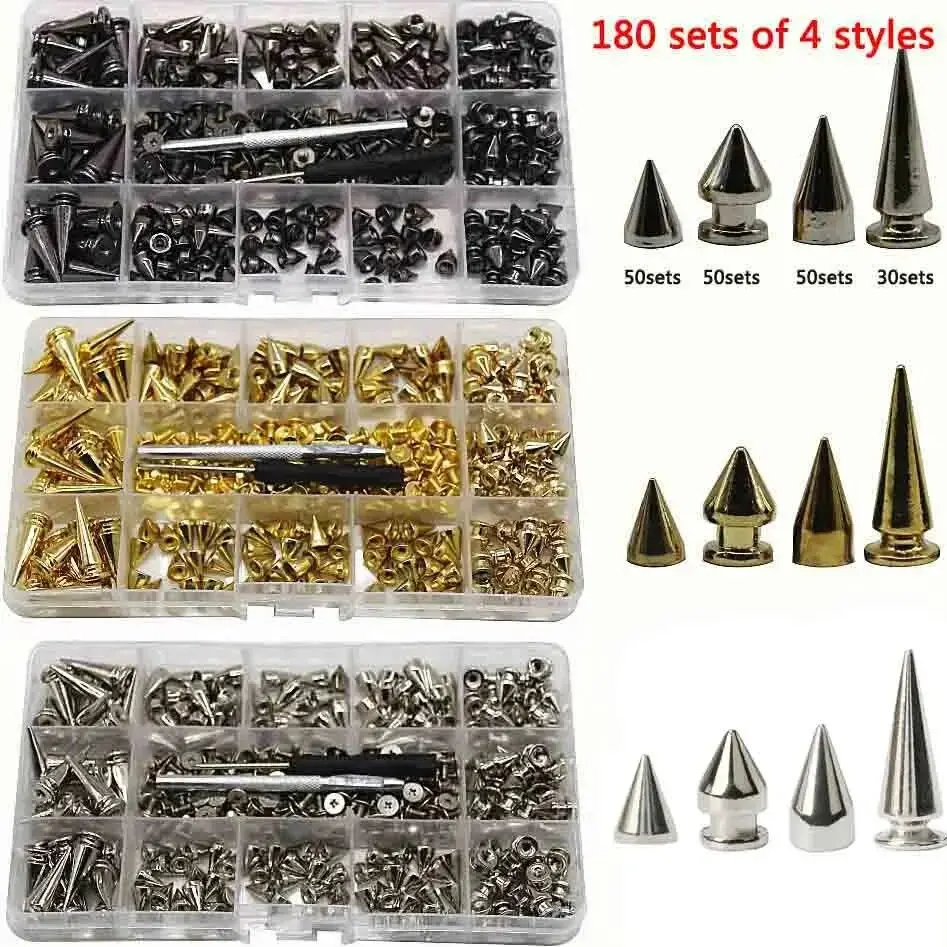 180/80 Sets Punk Rivet Screw Back Studs and Spikes Kit with Tools for Leather Craft DIY Projects.